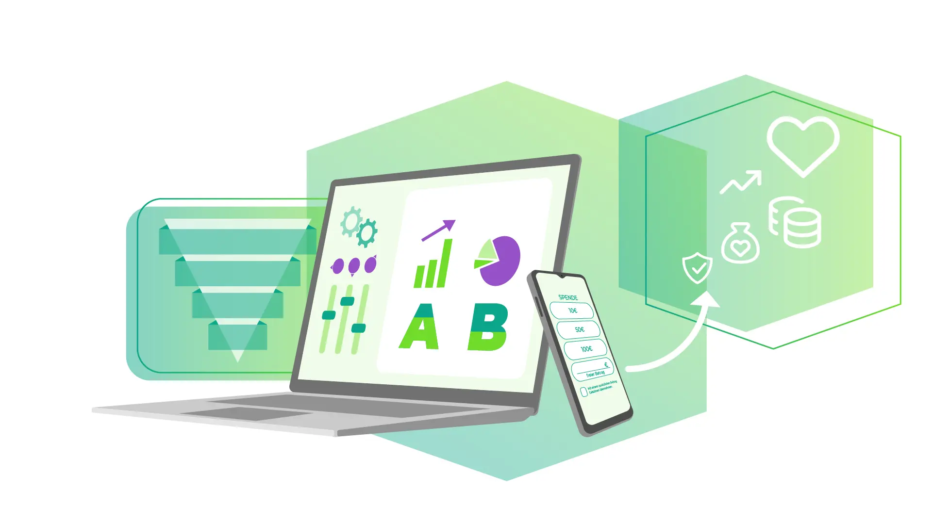 Um möglichst viele Menschen zu erreichen, setzt Du auf verschiedene Kontaktpunkte und passt das Spendenerlebnis an Deine Zielgruppe an. Gleichzeitig steuerst Du Deine Maßnahmen datenbasiert und optimierst gezielt die Kanäle, die den größten Erfolg bringen.