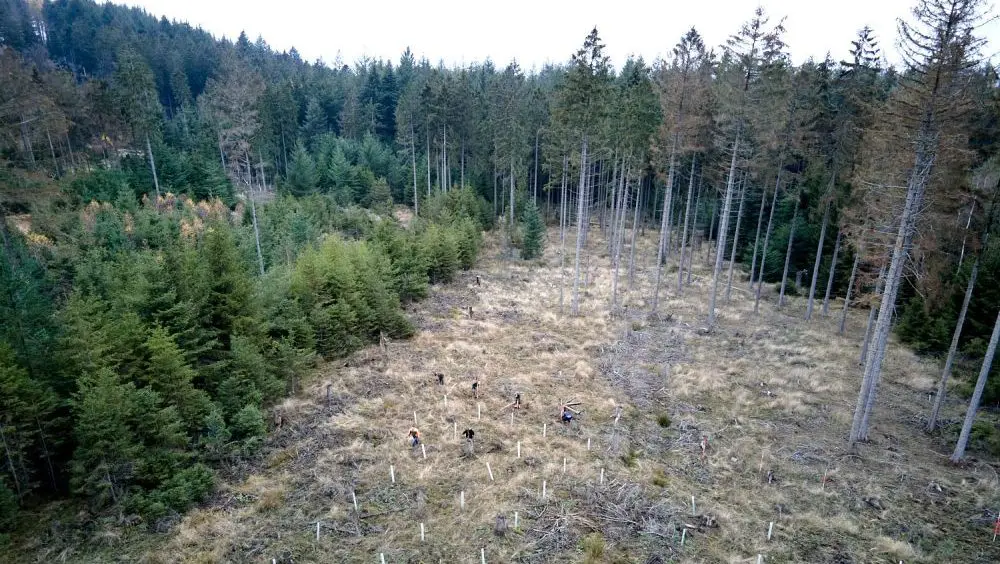 Rund 62 Millionen Tonnen CO₂ speichert der deutsche Wald pro Jahr. Darüber hinaus ist er ein wichtiger Wasserspeicher und -filter, Lärmschutz, Luftfilter, Lebensraum für viele Tiere und Pflanzenarten als auch Erholungsraum für uns Menschen.